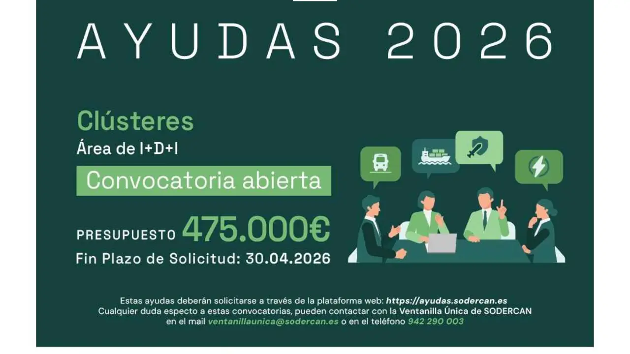 Industria SODERCAN convoca ayudas para los clústeres sectoriales con 475.000 euros Marta Alonso 01/abr/26 11:11