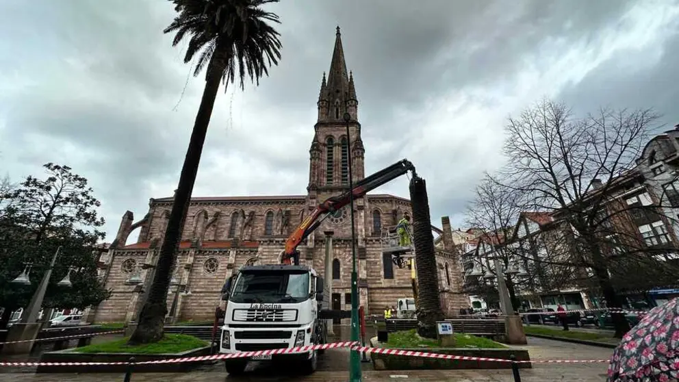 Torrelavega Retirada "por seguridad" los restos de una de las palmeras centenarias junto a La Asunción de Torrelavega Marta Alonso 10 feb