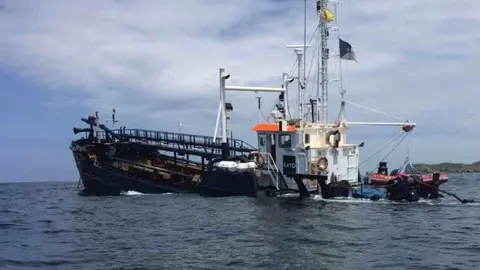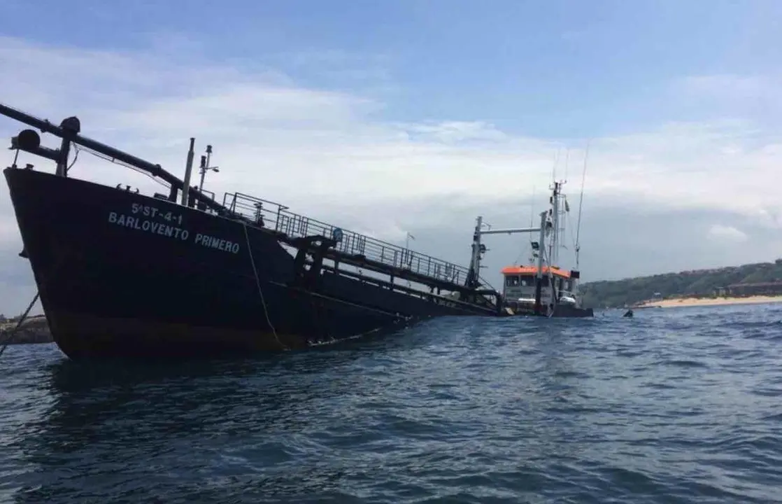 El 'Barlovento I', de 39 de metros de eslora y 7,5 de manga, se hundió a primeras horas de la tarde del miércoles "en apenas 20 minutos", según Delegación del Gobierno, tras abrirse una vía de agua en la sala de máquinas cuando realizaba labores de dragado en la entrada del puerto de Suances, sin que se hayan registrado daños personales entre los tres miembros de la tripulación.