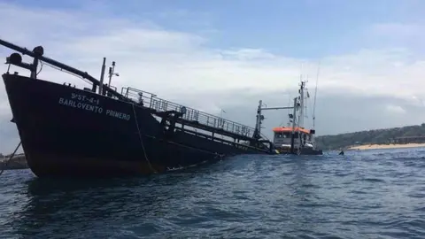 En un comunicado, Delegación del Gobierno informó de que en un primer momento, "no se aprecian signos de contaminación", aunque se mantiene "estrecha vigilancia" sobre el pecio, hoy, casi 20 días después la contaminación es visible desde diferentes puntos de la costa suancina.