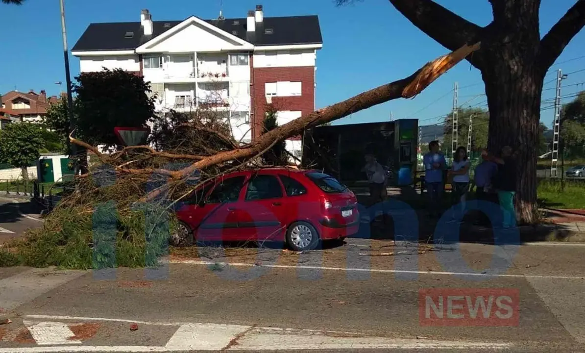 Cae una gran rama de una árbol sobre un coche en Puente San Miguel