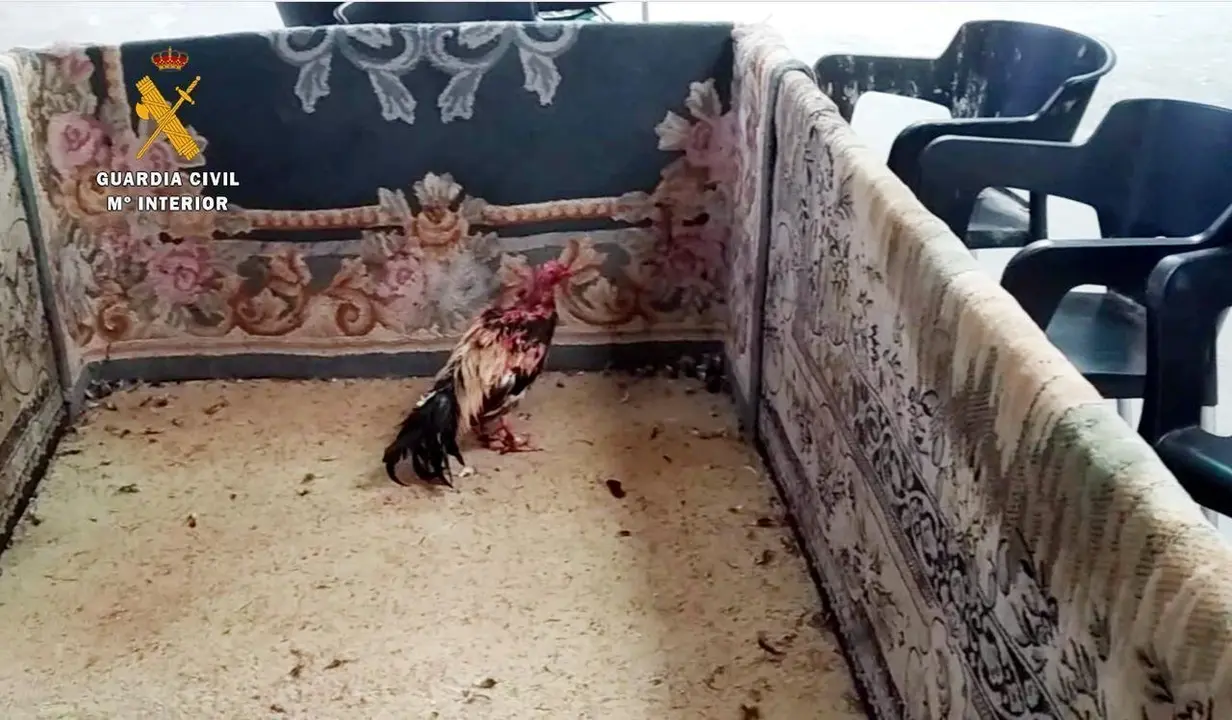 Una vez los agentes en el interior, además de desbaratar la tentativa de fuga por el tejado, se encontraron con un importante grupo de hombres, diferentes gallos enjaulados y un reñidero rectangular en el que se encontraban peleando dos gallos que presentaban importantes heridas en la cabeza con sangrado abundante.