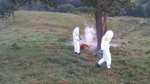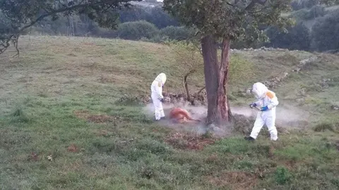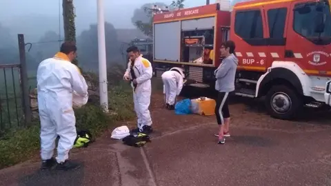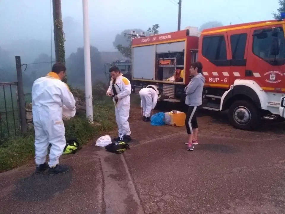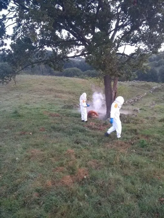 Bomberos de Torrelavega intervenían en la tarde de ayer en una finca de Villapresente, en el municipio de Reocín, por el ataque de un enjambre de avispa asiática a una novilla limusina que acababa con su vida.