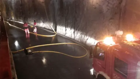 Bomberos de 112 Cantabria han acudido al lugar y tras el corte de carretera han procedido achicando el agua que inundaba la zona central del túnel. El corte de carretera ha durado entorno a una hora.