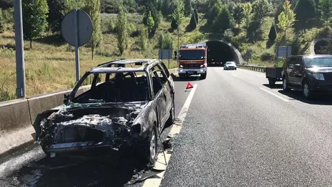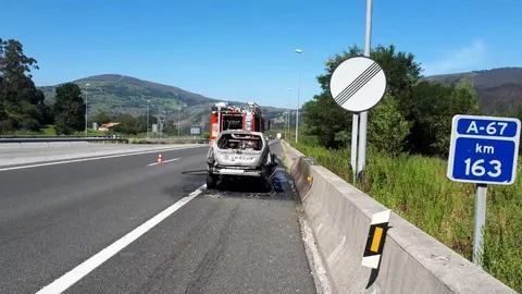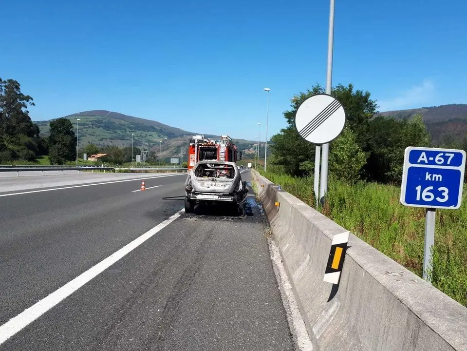 Una colisión en la A67 deja cuatro heridos y un vehículo incendiado