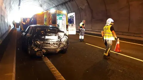 En el otro vehículo accidentado, se quedó dentro del túnel y su copiloto requirió de ayuda para salir. El conductor pudo salir por sus propios medios. En el lugar @guardiacivil y mantenimiento de carreteras.