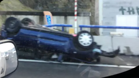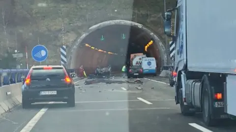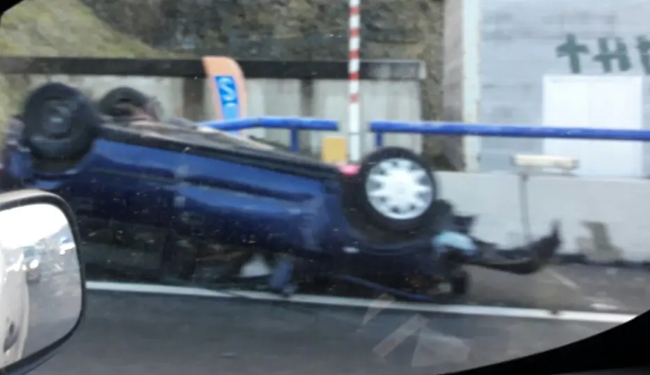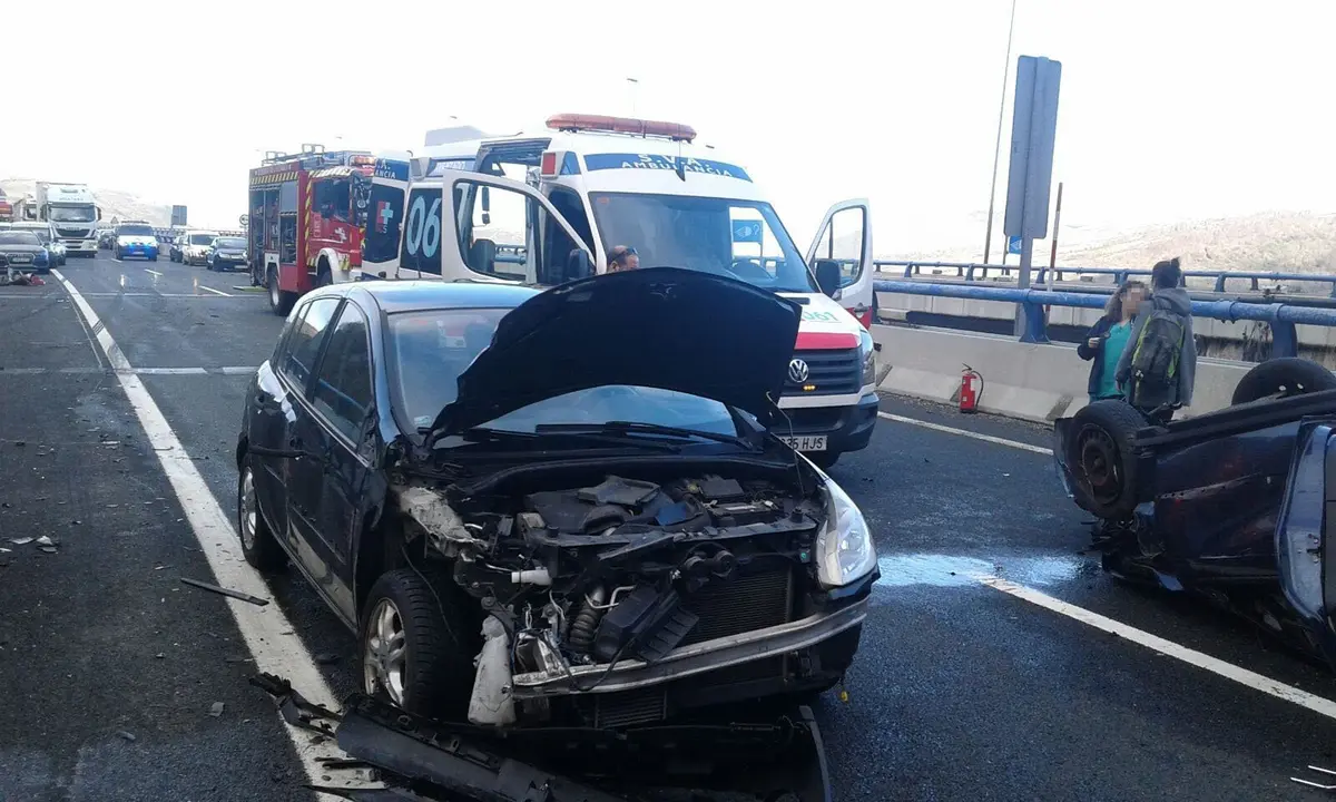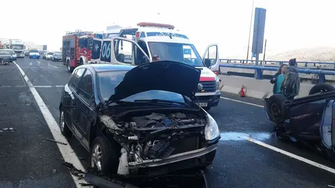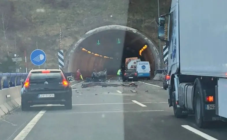 El choque se ha producido en el punto kilométrico 143, donde ha quedado volcado un vehículo sobre la calzada, antes del túnel.