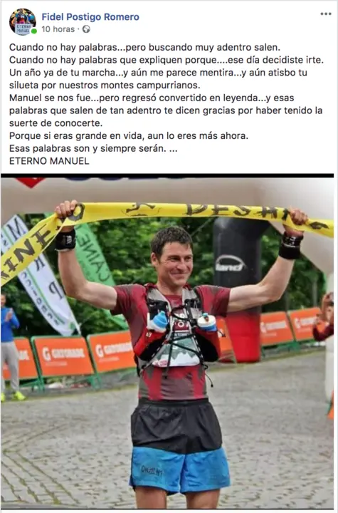Reconocido a nivel nacional en el mundo del deporte por ser un portento físico, pero más aún por ser una buena persona, ganador de multitud de pruebas trail y ultra trail, hoy, a un año de su fallecimiento, es recordado por los usuarios en las redes sociales.
