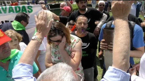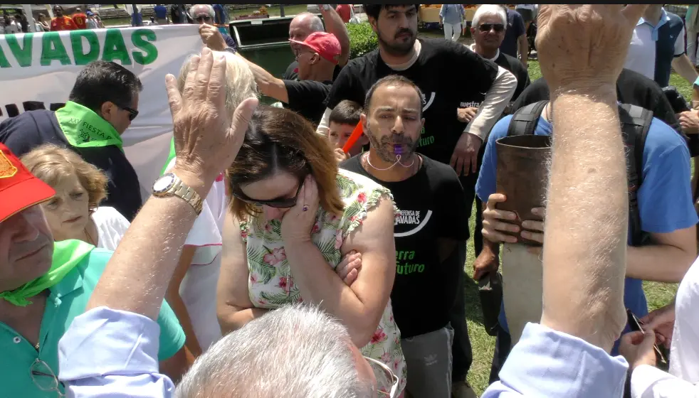 13 manifestantes de Las Excavadas tratan de interrumpir la intervención de Revilla en la fiesta del PRC