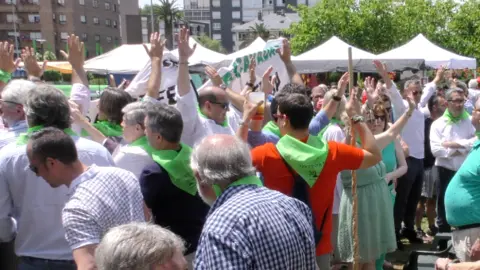 13 personas con campanos y silbatos han tratado de interrumpir el acto en el que hablaba el Presidente Miguel Angel Revilla en la fiesta del PRC de Cantabria en el Parque de Mesones de Santander.