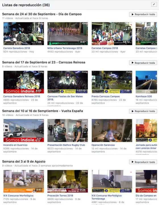 Hemos generado de media 9 contenidos de video cada semana, los podéis ver en el siguiente enlace, todos nuestros datos están siempre abiertos al público: https://www.facebook.com/pg/ifomocantabria/videos/