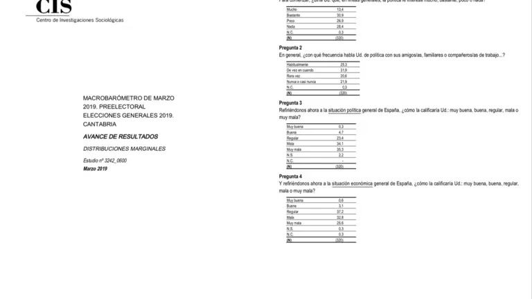 photo photo_camera Cantabria Aquí te dejamos los datos de Cantabria de un CIS realizado a 320 personas