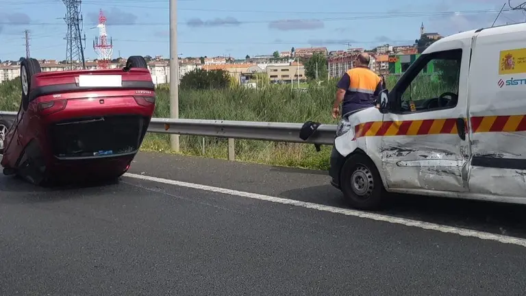 photo photo_camera Cantabria Colisiona contra un vehículo de mantenimiento y acaba volcando en la A67