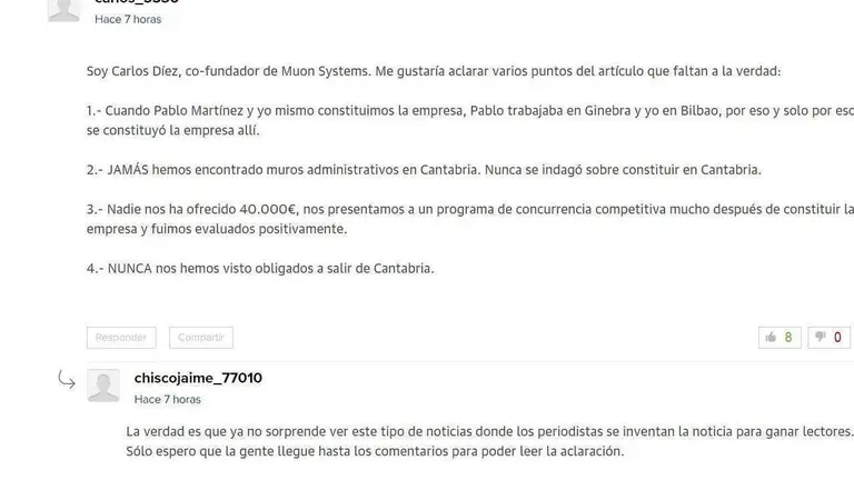 photo photo_camera Cantabria Carlos Díez co-fundador de Muon Systems: "Es 'mentira' que nos hayamos instalado en Bilbao por falta de ayudas en Cantabria"