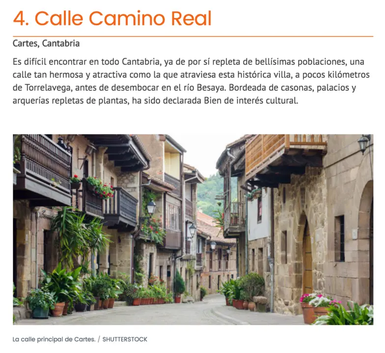 La Calle Camino Real de la Villa de Cartes se 'cuela' dentro del Ranking nacional elaborado por el periódico El Mundo en el número 4 de 18 de las calles más bonitas de España.