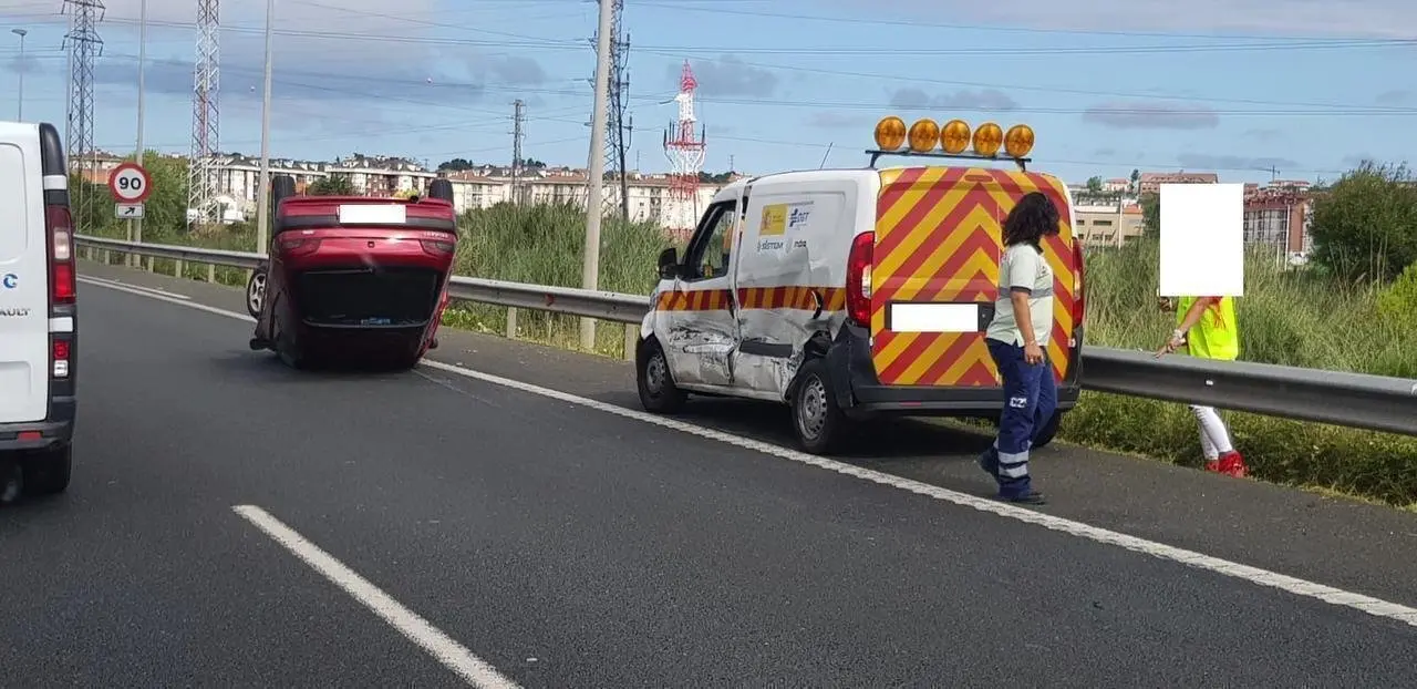 Pasadas las 11:00 horas de este lunes 13 de Agosto un vehículo colisionaba contra otro, de mantenimiento de carreteras (concretamente de paneles variables, radares y cámaras de la DGT), que, aunque la primera información indicaba que se encontraba parado en del arcén de la autovía A67 sentido Torrelavega a la altura de el 1 de Mayo, el mismo, se encontraba circulando por la misma.