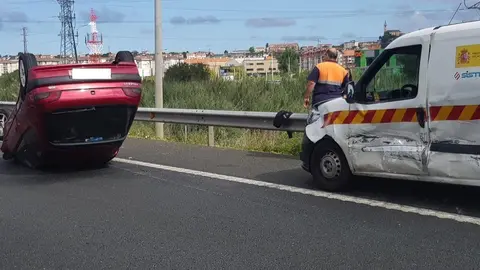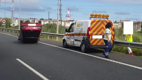 Colisiona contra un vehículo de mantenimiento y acaba volcando en la A67