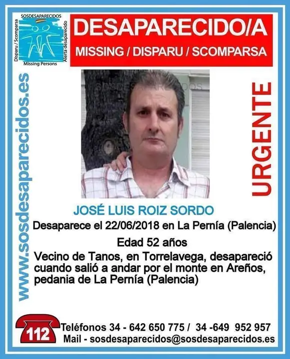 También se busca a José Luis Roiz Sordo, de 52 años, desaparecido el pasado viernes cuando salió a andar por el monte en Areños, en la pedanía de La Pernía, en Palencia.