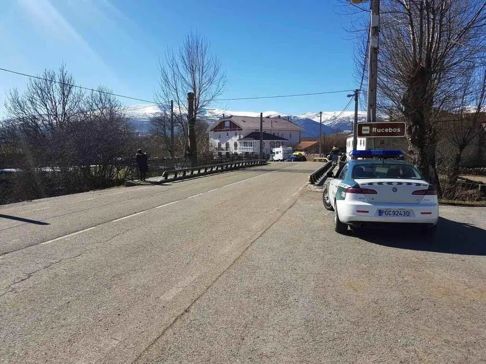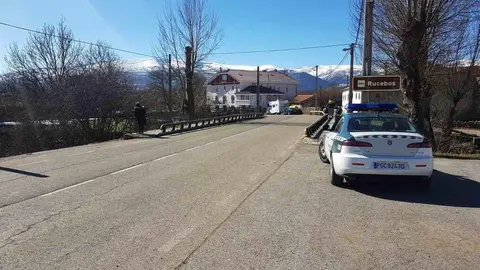 Guardia Civil de Tráfico corta el paso de los vehículos en Soto (Ayuntamiento Campoo de Suso) por la vertiente campurriana del puerto.