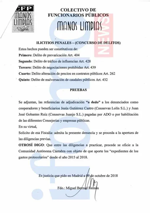 En el inicio de la noticia os dejamos la literalidad del escrito presentado por Manos Limpias en Madrid con fecha 9 de Octubre.