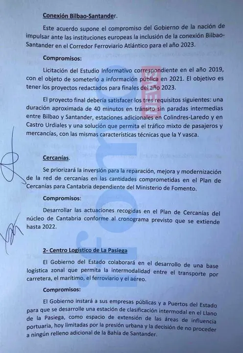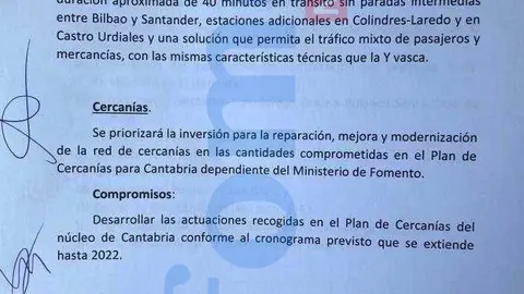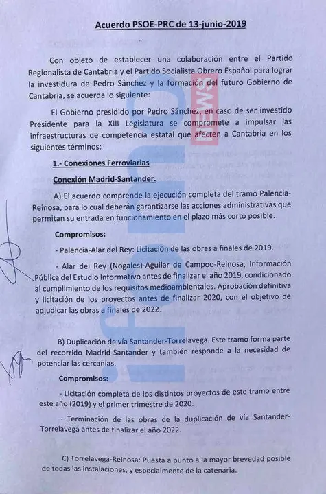 Se cumple así lo prometido por los regionalistas en la campaña electoral, incluyendose en el acuerdo el Tren, Valdecilla y las carreteras.