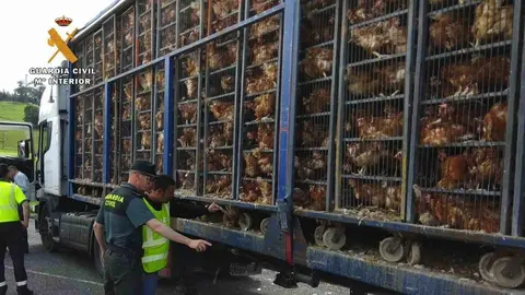 Guardia Civil investiga un transporte deplorable de 8.000 gallinas