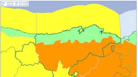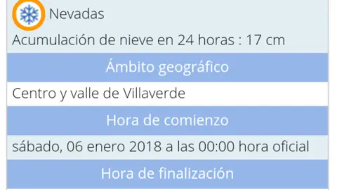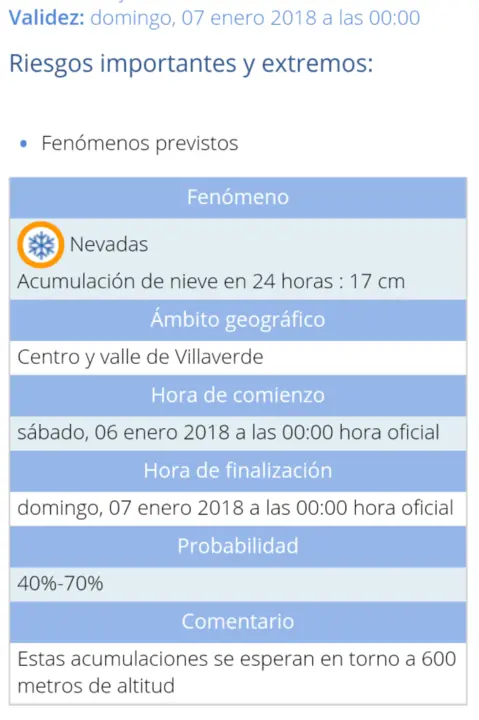 En estas zonas, el aviso de nieve se amplia a naranja del sábado al domingo por acumulacion de 17cm en 24horas en cota 600metros.