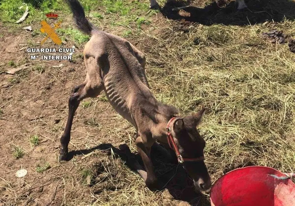 Las diferentes indagaciones realizadas por la Guardia Civil, tienen como resultado, el hallazgo el pasado día 23 de junio, de uno de los potros en una finca de Campuzano. Debido al estado del equino, fue inmediatamente trasladado por personal designado por el Ayuntamiento de Torrelavega hasta las instalaciones que disponen en el interior del Mercado Comarcal de Ganados de dicha localidad. Una vez allí, recibió las primeras atenciones que se completaron con una valoración veterinaria en la que el facultativo describió un cuadro de desnutrición, que pudiera haber desembocado en la muerte del mismo.