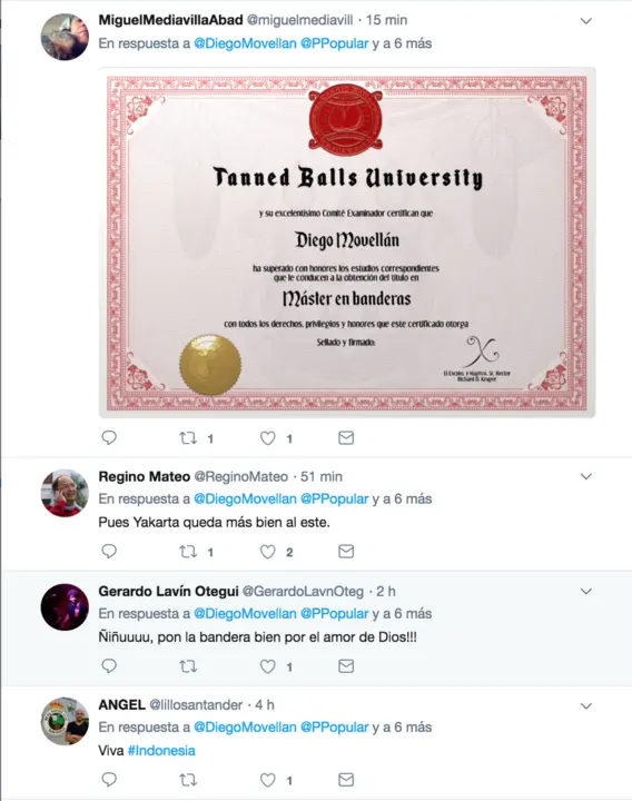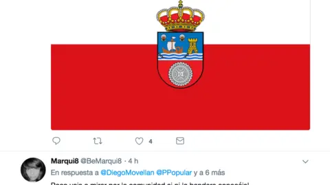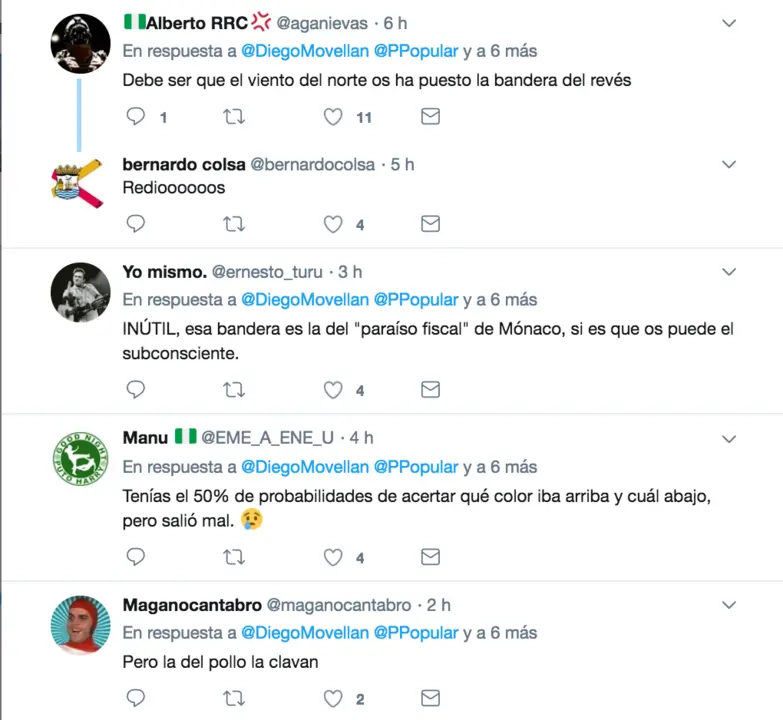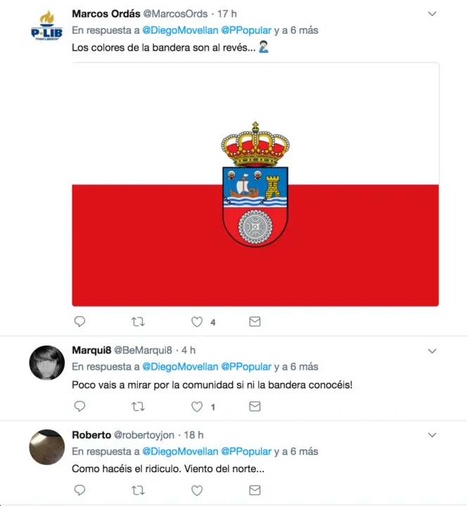 Movellán (PP) equivoca la bandera de Cantabria y le llueven las críticas