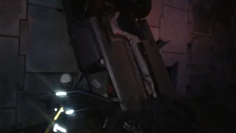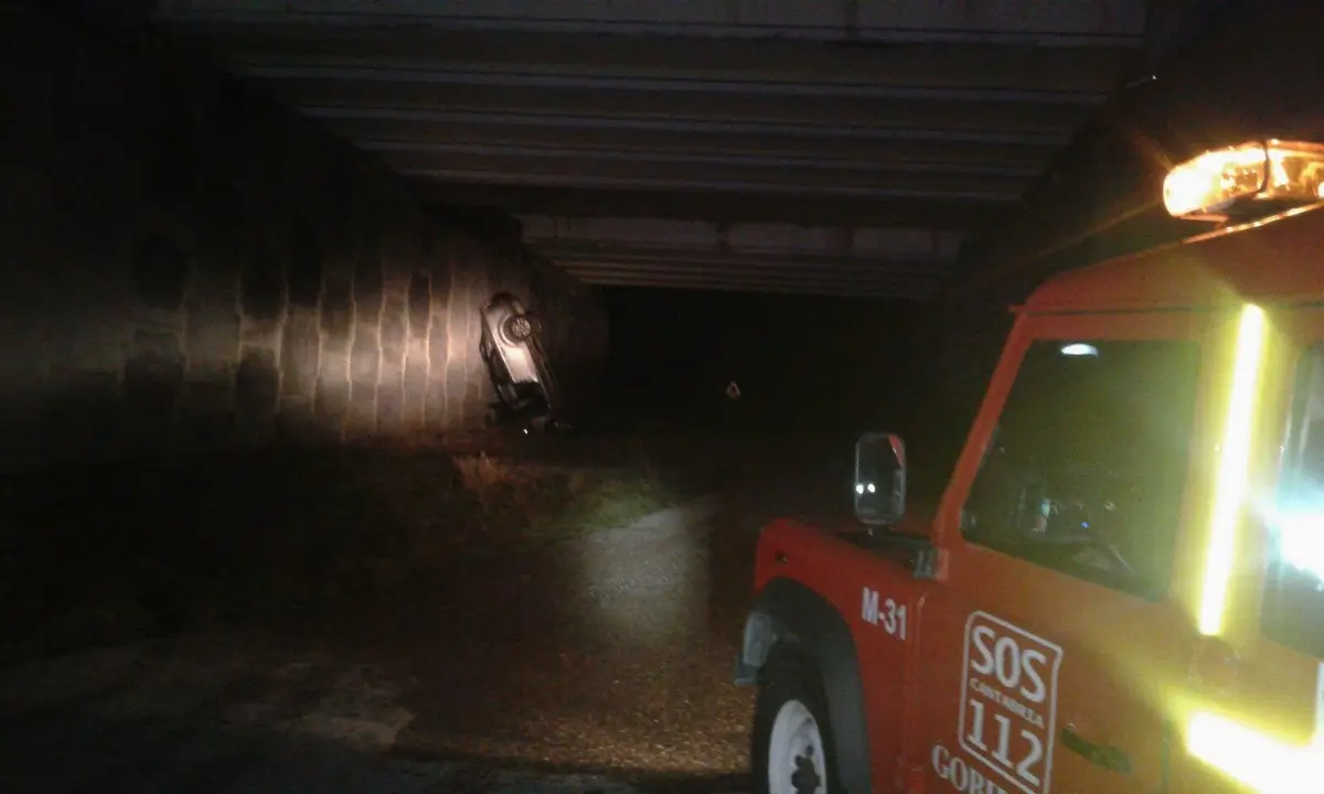 A la llegada de los bomberos los ocupantes ya se encontraban fuera del vehículo, al cual pasaron a asegurar desconectando la batería e impidiendo que se derramaran líquidos a la vía.