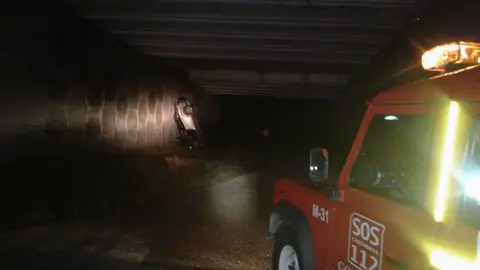 Tres personas resultan heridas al salirse el vehículo en el que viajaban de la A67 y caer por un viaducto