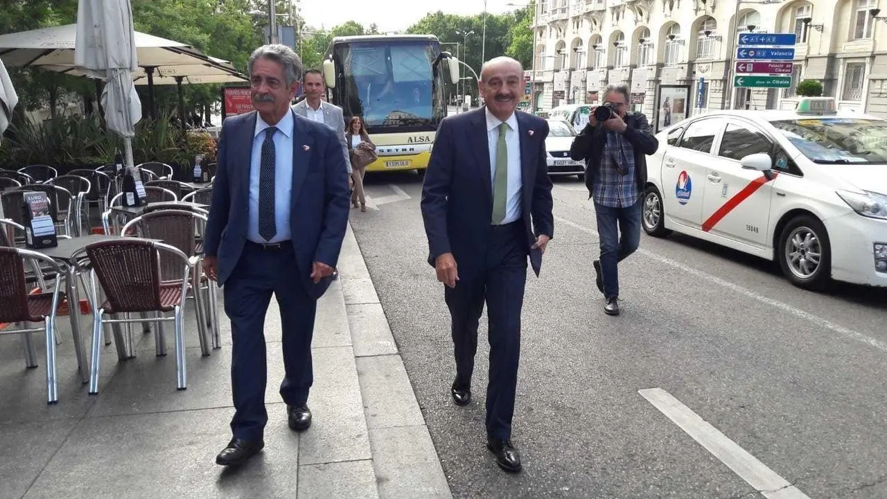 Nada más ver al grupo de regionalistas, Revilla ha pedido al conductor autobús que trasladaba hasta al Congreso a la expedición del PRC que parase allí mismo para bajarse y saludar, y allí mismo también ha sido entrevistado por periodistas de TeleMadrid.