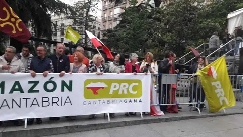 Una treintena de militantes del PRC reciben a Revilla y Mazón a la entrada del Congreso