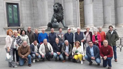 El grupo de militantes ha viajado en autobús durante toda la noche, desde Santander hasta la capital de España, para arropar al que hoy tomará posesión como diputado y se convertirá en el primer representante nacional del PRC en la historia del partido.
