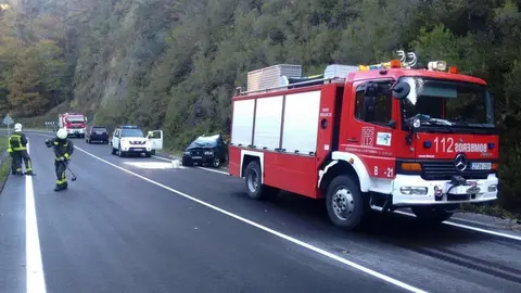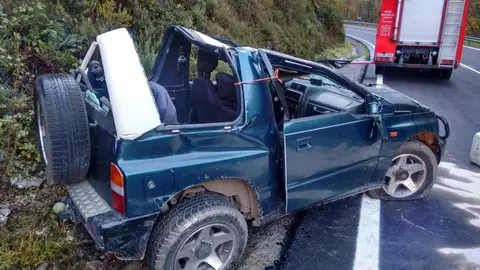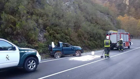 Bomberos del 112 acudieron esta mañana al aviso de un accidente con vuelco de coche en la CA-817 en Los Tojos . Aseguraron el vehículo y la zona, y limpiaron la calzada afectada por vertido de aceite. Sin heridos.