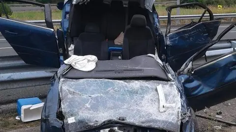 A la llegada de los efectivos al lugar, cortaron la autovía al tráfico, encontrando fuera del vehículo a un ocupante de la parte trasera que había salido por sus propios medios y estaba consciente. El vehículo, que había quedado inestable encima de las dos biondas, hizo que se complicaran las labores de valoración y excarcelación de los tres ocupantes atrapados.