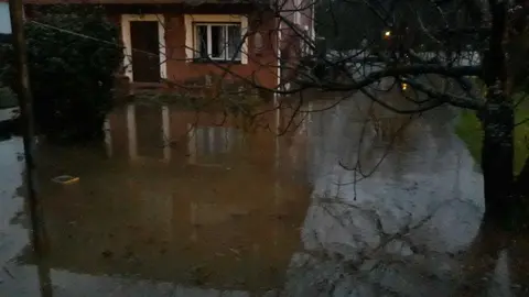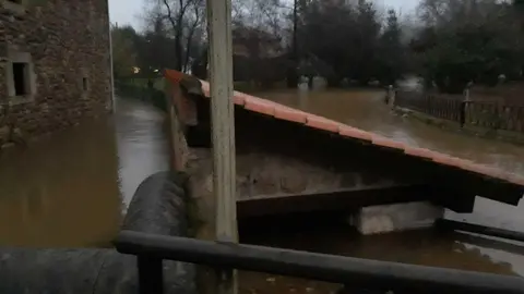 El Saja se desborda en Villanueva de la Peña afectando a multitud de viviendas
