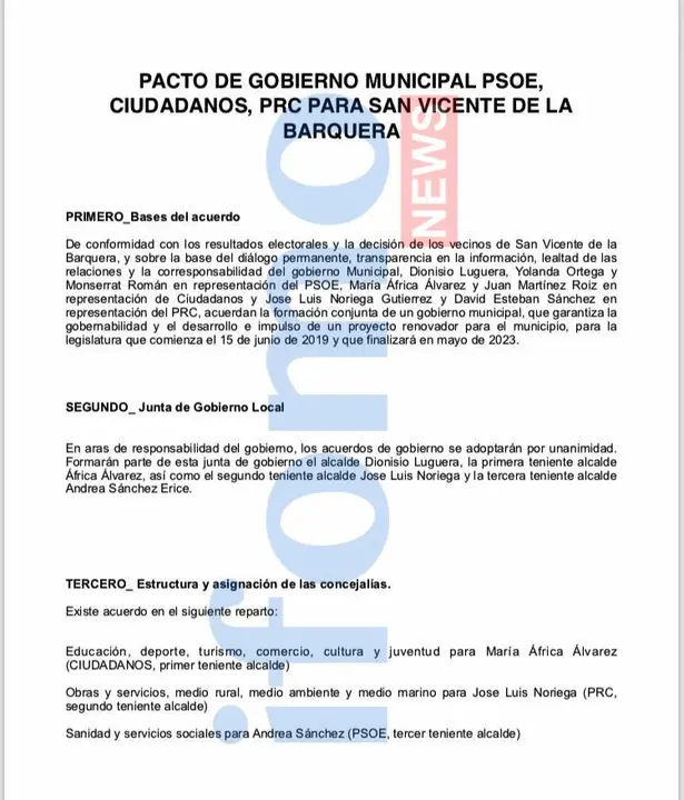 África Álvarez formará parte de la Junta de Gobierno Local como primer teniente de alcalde y se hará cargo, asimismo, de la Concejalía de Educación, Deporte, Turismo, Comercio, Cultura y Juventud. Por su parte, el concejal del PRC, José Luis Noriega, se hará cargo de Obras y Servicios, Medio Ambiente y Ganadería.