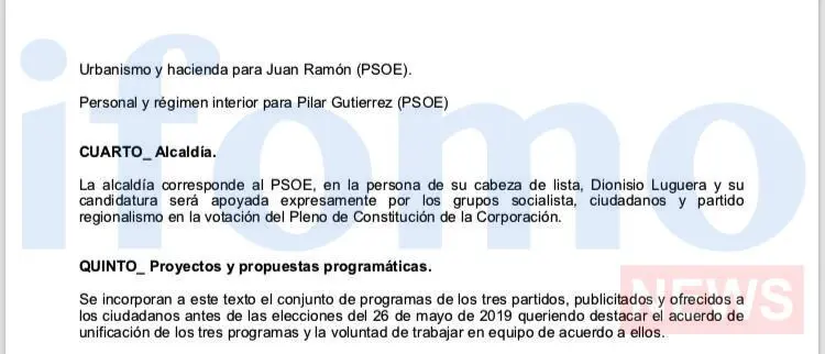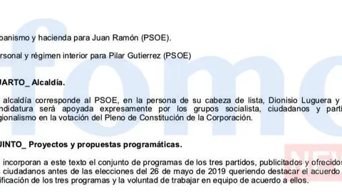 El tripartito, que suma seis concejales (cuatro del PSOE, uno del PRC y uno de Cs), dejará en la oposición al PP, la lista más votada en las elecciones del 26 de mayo con cinco concejales.