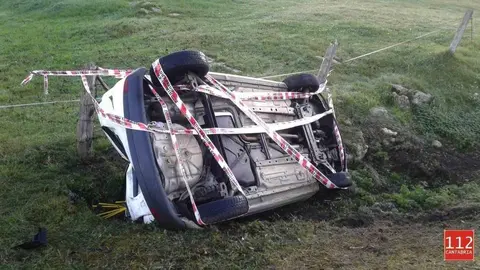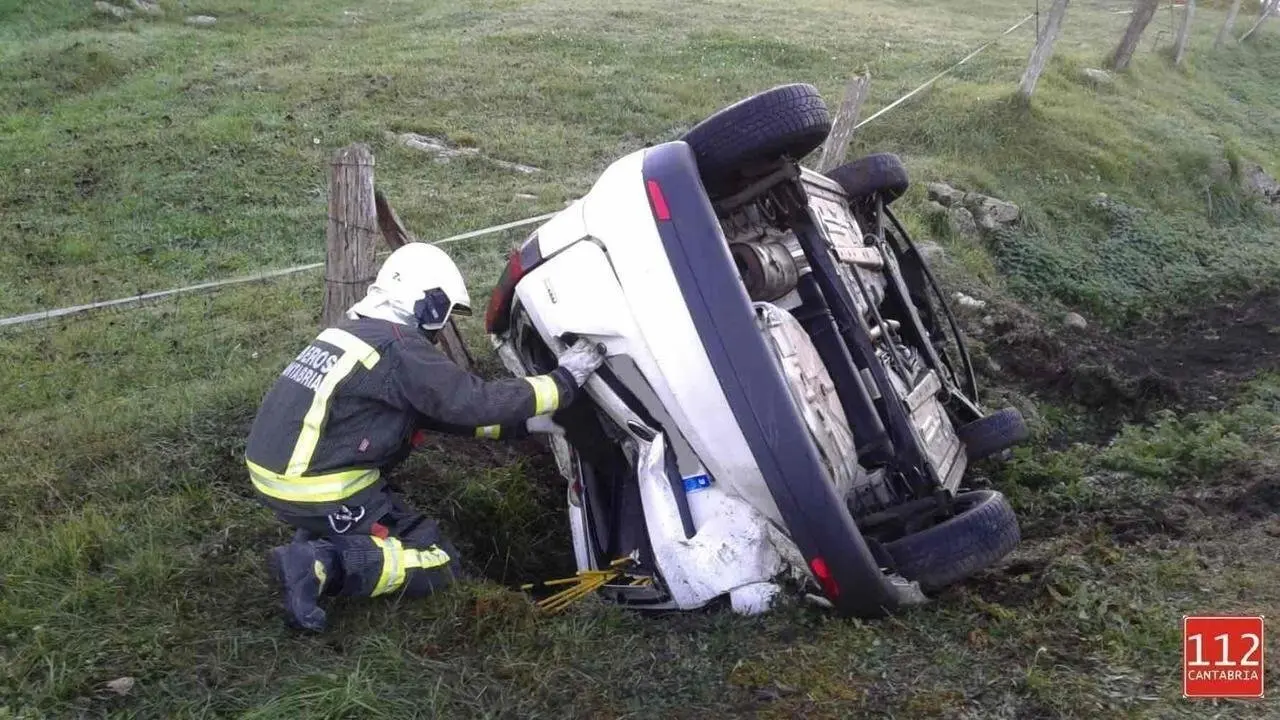 Vuelca con su vehículo en Valdáliga y se va a casa caminando