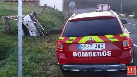 En la mañana de este sábado 17 de Noviembre Bomberos 112 Cantabria y Guardia Civil acudían a la N634 a su paso por Valdáliga por un accidente con vuelco.