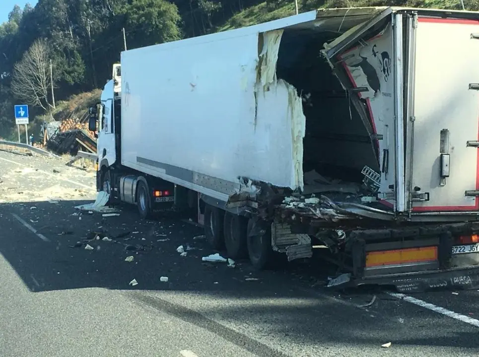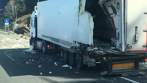 Colision por alcance entre dos camiones en la A8 a su paso por Islares