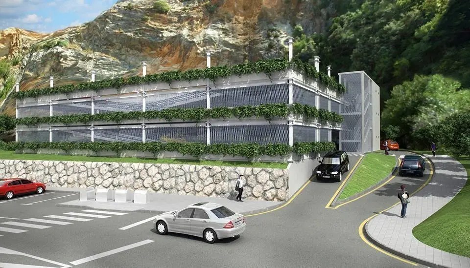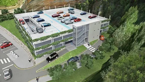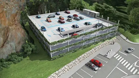 Estas son las primeras infografias del parking, para un total de unas 140 plazas. El proyecto incluye la elaboración del estudio geotécnico, tanto del subsuelo como de las paredes de la cantera, así como la instalación de vallado de seguridad en todo el perímetro del parking, para garantizar la total seguridad.