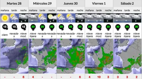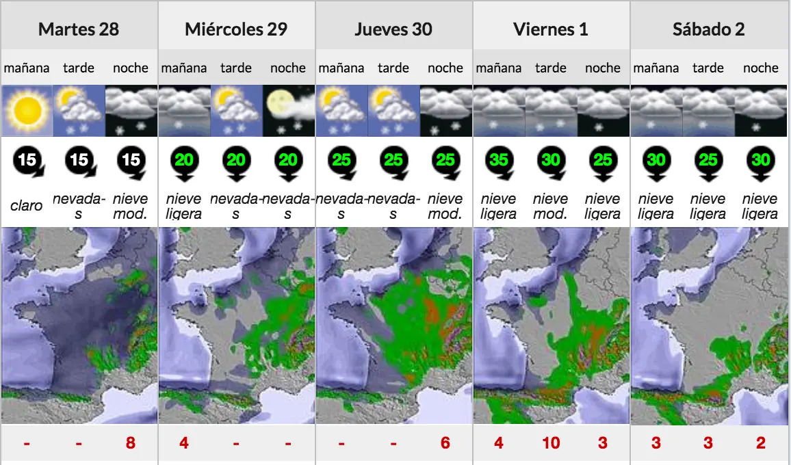 Hasta 43 cm de nieve nueva se prevén del martes al sábado con la cota en 300metros