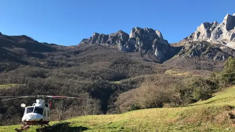 El helicóptero rescata a un senderista con una pierna rota en Camaleño