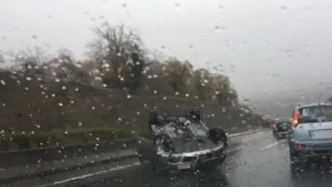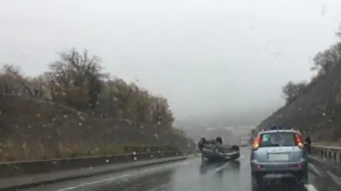 Precaución en la autovía A67 sentido Santander a su paso por Reinosa, en el tramo entre Reinosa y Lantueno se produce este accidente que deja un vehículo volcado. En este momento, 16:00h, no hay información sobre los ocupantes.