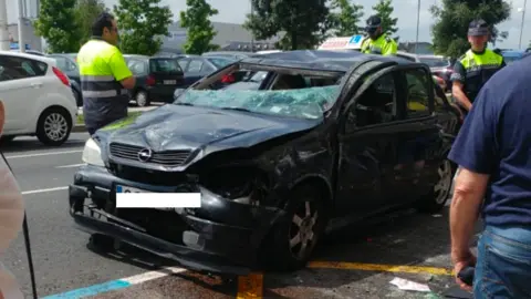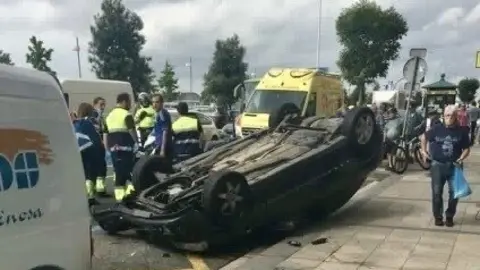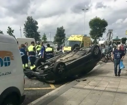 El vehículo de la imagen circulaba por el carril derecho, en el sentido de la marcha, "a mas de 100 y se saltó el semáforo" según relata un testigo a ifomo, prosigue "primero impactó contra un vehículo, conducido por una joven, que circulaba por el carril central y después, volcaba" quedando tal como se ve en la imagen e impactando contra una furgoneta que se encontraba en carga y descarga, hechos que aún no han sido confirmado por la Policía.