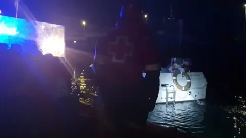 Sus tripulantes han sido trasladados a puerto sanos y salvos y la embarcación remolcada hasta la zona de extracción del agua tal como vemos en las imágenes de Cruz Roja.