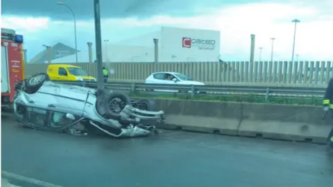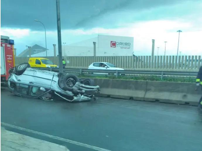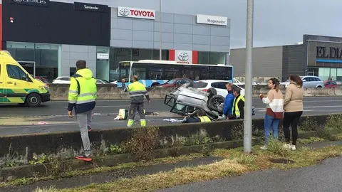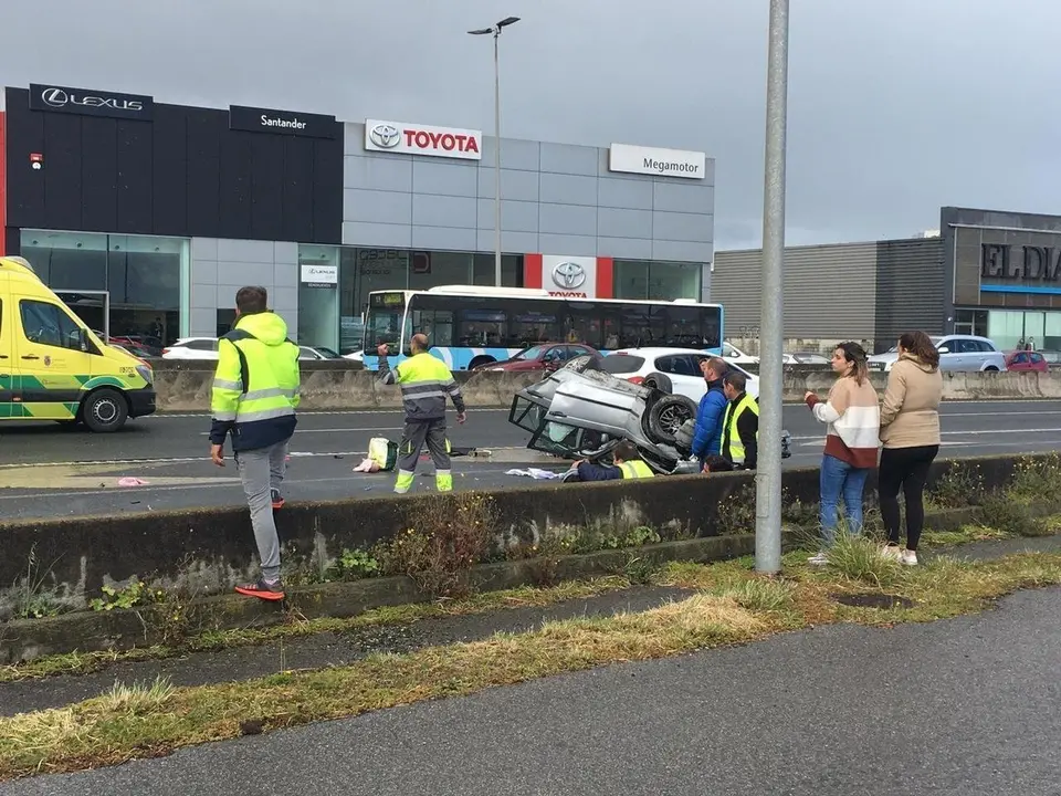061 informa que en el accidente con vuelco de la s-10 se han trasladado al servicio de urgencia del hospital de valdecilla, dos mujeres de 34 años, ambas heridas leves
