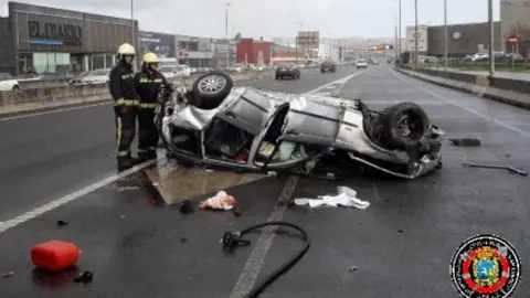 Entrada. Se registraba el primer accidente con un vehículo volcado.